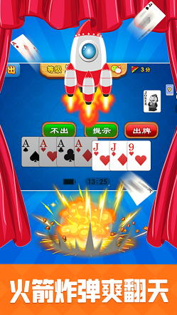 火箭升空、炸弹爆裂、顺子连击……所有特殊牌型均配备高清粒子动画与明星专属反应动作。例如打出“王炸”时赵四会激动拍桌,出“四带二”时刘能立刻甩袖大笑,细节满满,欢乐加倍。