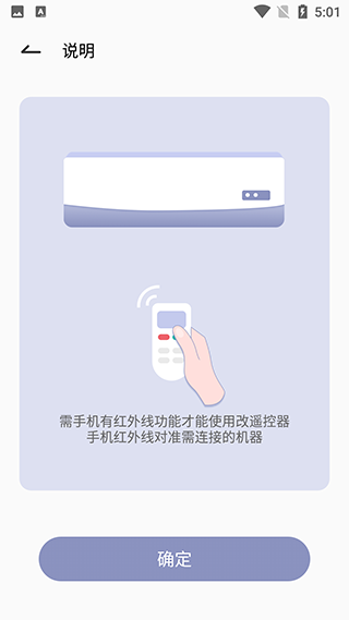2、以空调为例,将具有红外线功能的手机对准空调,点击确定。
