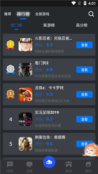2、新增排行榜功能,首页顶部可以查看大家喜欢的热门游戏