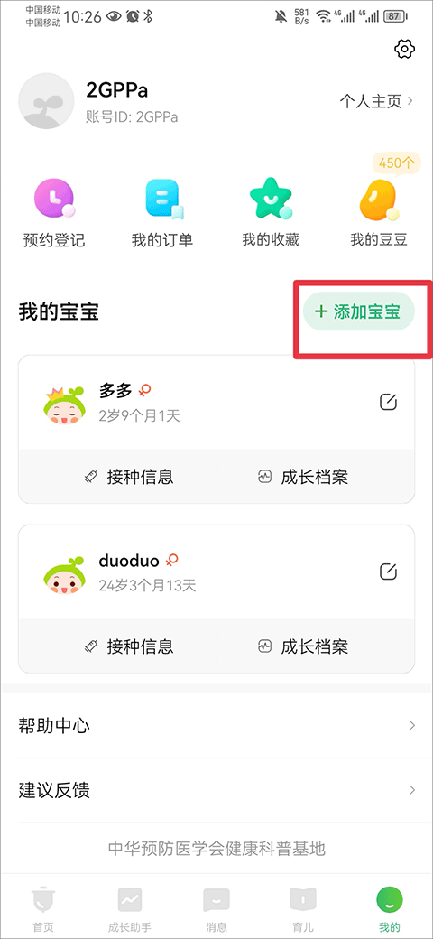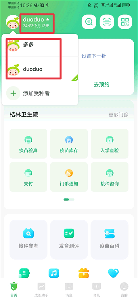 小豆苗预防接种怎么添加新宝宝和切换另一个宝宝
