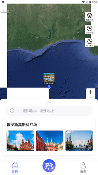 2、首页部分可以搜索国内和国外的地图街景,还有热门景点推荐,用户出去游玩不再盲目。