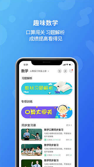 与当前主流教材同步,提供课本内容的学习,帮助学生轻松完成教材主题学习,巩固知识点。