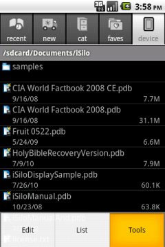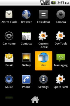 3、iSilo启动后,按设备上的菜单键获得应用程序菜单并点击工具