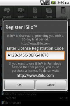 当你为Android购买iSilo的许可时,你会收到一个注册码,你输入iSilo,这样它就注册了。下面的说明提供了在iSilo中输入注册码的分步说明。这些说明假设您已经在您的Android设备上安装了iSilo for Android。