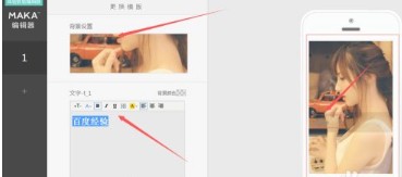 7、然后我们点击设置一下maka作品的背景,选择电脑本地的照片设置成背景即可,非常简单。然后我们在输入框中输入文字等。对应的右边页面手机界面就会变成我们制作后的效果了。