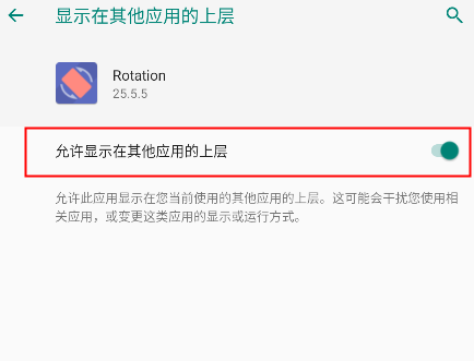 4、打开允许显示在其它应用上层这个功能。