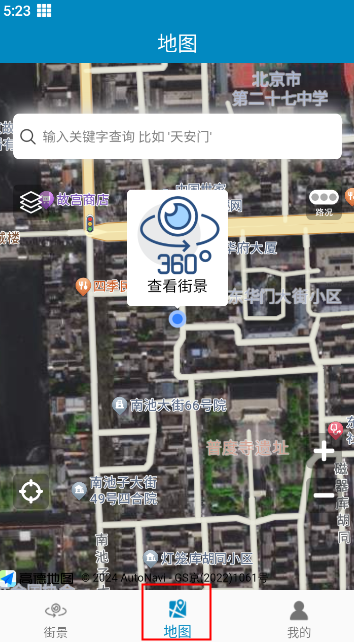 5、而在地图功能里,用户可以在上方搜索栏搜索,就可以查看该地方的街景;