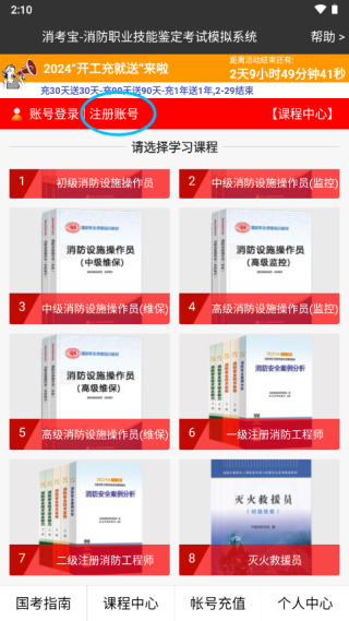 2、在课程中心左上角点账号注册