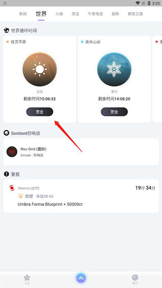 1、下载安装Warframe中枢app打开后,在首页可以看到有新闻、世界、入侵、午夜电波、裂隙、钢铁之路等功能;