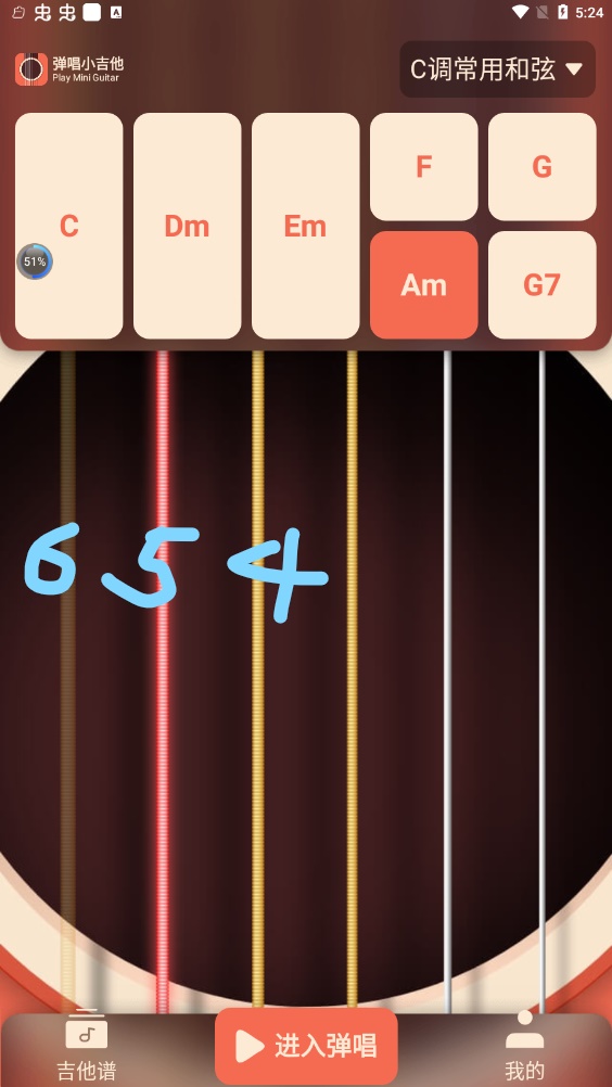 4、可以添加内置常用和弦或者自定义和弦,帮助熟悉吉他的指法、节奏以及弹奏方式。