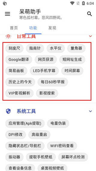 1、在本站下载呆萌助手app之后,进入首页列表,点击功能会有详细的系统工具介绍