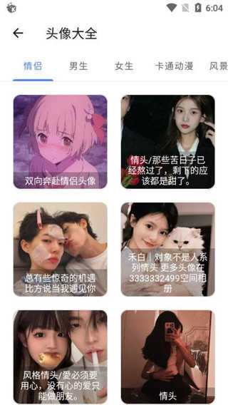 4、点击头像大全,可以看到各种不同种类的动漫头像