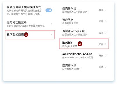 在【已下载的应用】中找到RayLink,并点击开启服务