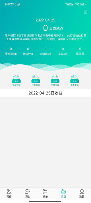4、用户可以查看每日、每月、每年的一个收益明细;