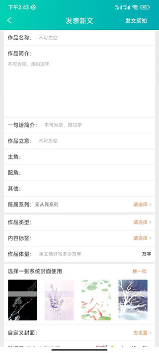 1.【改版】发表新文、更新旧文时,新增情感母题、角色卡等设置