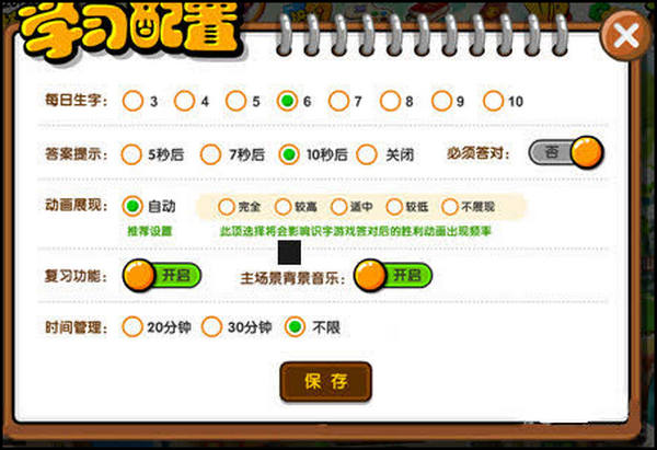 4、进欢乐谷,欢乐谷游戏中出现的汉字为您孩子所学汉字中掌握最差的字。通过欢乐谷游戏可以对掌握差的字进行巩固,当该字达到一定熟练度后就由其他字所代替出现;