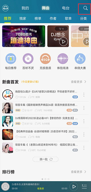 中文DJ舞曲、英文DJ舞曲、3D环绕舞曲,日韩舞曲、车载、夜店、苏荷、喊麦、电音DJ、节奏、Remix、网络DJ、网络红歌,只有想不到,没有找不到。