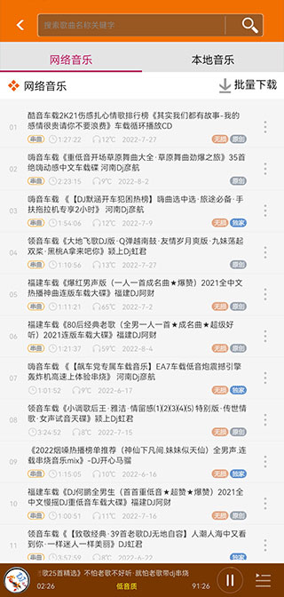 所有舞曲支持下载高音质音频到本地, 节省流量, 无网络也可听。