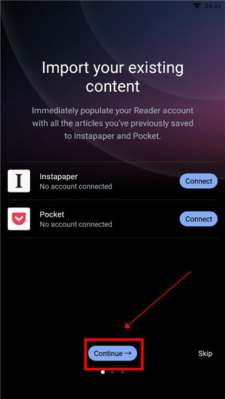 4、接下来就是导入一些软件设置,点击下方即可去设置,也可点击旁边的【skip】直接跳过。