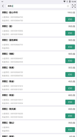 7、比如输入芙蓉王,就能快速得到芙蓉王各种类型的烟价格;