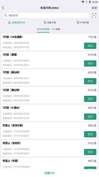 3,支持批量打印,可以一次性生成大量价签,并帮助您快速打印出来。此外,该软件还支持多种不同的烟草价签尺寸,以适应不同的打印需求。