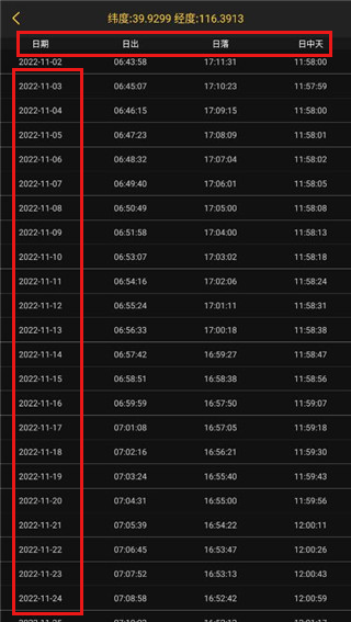 2、然偶就有每天的日出日落时间具体时间