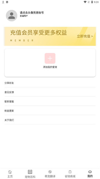 2、然后进入软件主页,这里可以将你的宠物添加至其中;