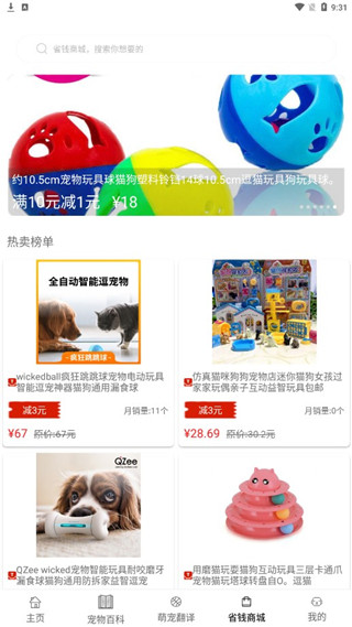 5、进入省钱商城,这里可以购买很多有关于宠物的东西,非常方便。