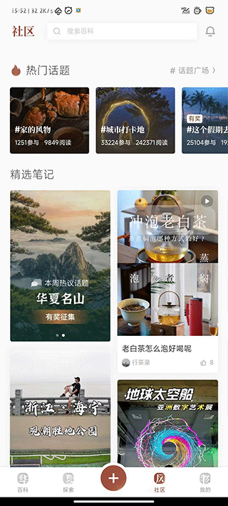 3、社区界面则可以和大家一起聊城市的小吃特产、美好风景、非遗技艺等,记录你的风物生活,分享点滴美好