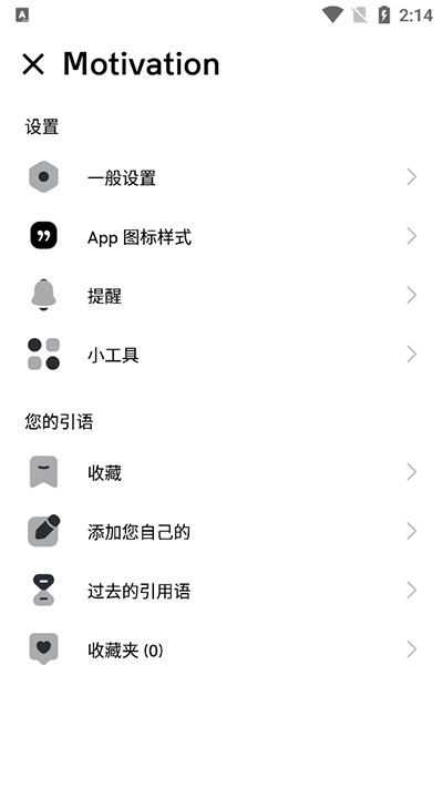 生活压力太大,没有人给你鼓励没有地方宣泄怎么办?今天小编给大家带来一款日常激励语录软件-Motivation,里面有很多不同类型的励志语言,比如生活、爱自己、健身锻炼、社交焦虑等,都能够给自己更好的激励,以便在最沮丧的日子里、最需要鼓励的时候随时为自己打气。同时自己也可以自定义激励金句,将金句收藏或者分享给好友。同时在这里用户可以每天规划自己的日常,打卡学习或工作。有需要的用户快来下载使用吧。