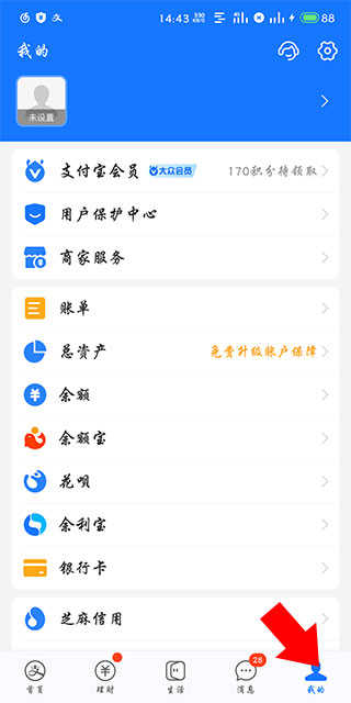 1、打开支付宝,点击“我的”