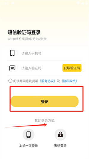 2、进入软件登录页面用户可以使用手机号和验证码的方式进行登录,或者其他方式。
