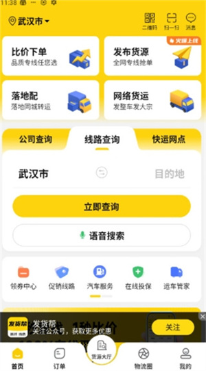 4、完成登录即可进入软件主页,可以选择查看物流线路寻找符合条件的物流公司了。