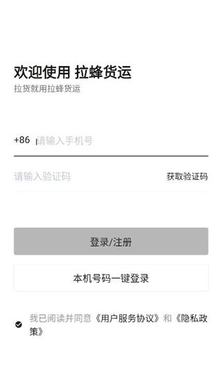 1、在本页面下载好拉蜂货运司机版,通过手机号进入应用;