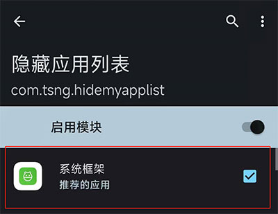 3、进入【LSPosed】点击【隐藏应用列表】,勾选【系统框架】,重启手机。