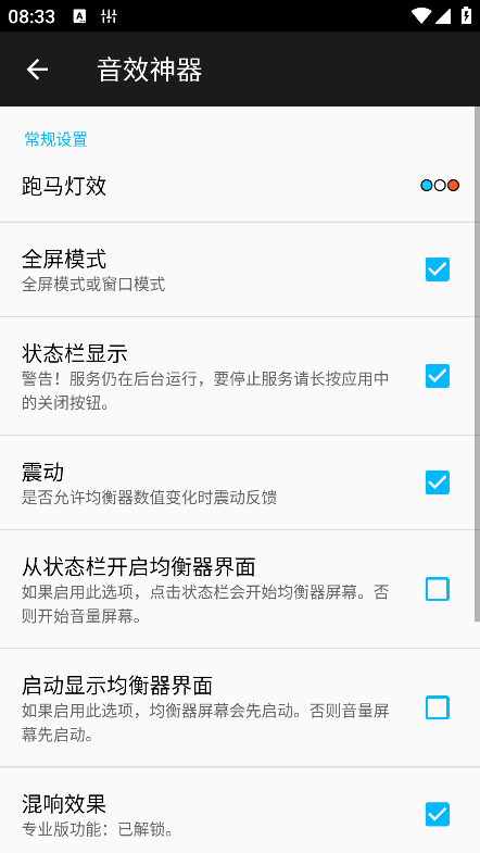 5、还可以自定义设置跑马灯效,全屏模式,状态栏显示等参数。