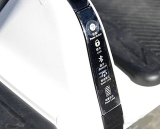 2、平衡车前面是开关和蓝牙指示灯,还有一个是电量显示。平衡车的时速可以达到高潮15km/h,这个速度对于平衡车来说是很快的了,要注意安全哦。