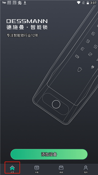 2、点击首页中,里面没有任何设备,点击添加设备;