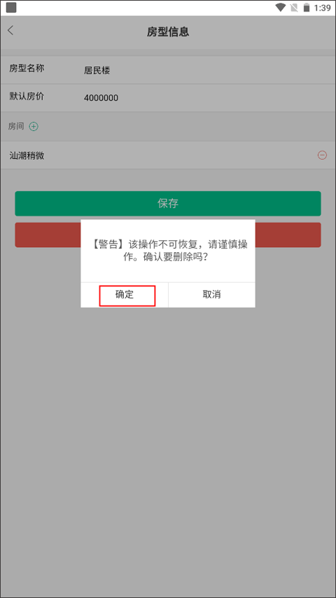 5、点击下方的“删除该房型”,页面弹出提示“该操作不可恢复,请谨慎操作。确认要删除吗?”,点击确定就可以了。
