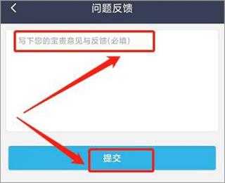 5、进入问题反馈界面,输入反馈内容,点击【提交】即可。