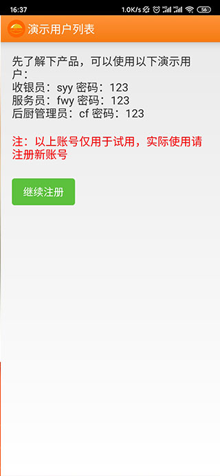 2、如果没有账号的话,请点击注册餐厅,然后在仔细观看演示注册账号,点击继续注册: