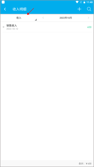2、会看到还没有收入记录,点击右边的“+”图标。