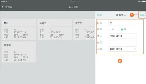 2、在屏幕右侧填写员工的各项信息,确认无误后点击“完成”