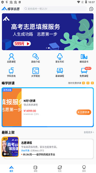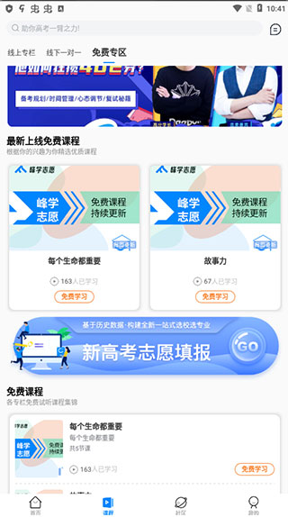 款专注于升学规划和志愿填报服务的应用平台,提供一站式服务体验。在这里,名师在线授课,深入讲解专业志愿填报知识,峰学蔚来app官方版为您精心推荐不同课程,呈现清晰的课程内容,助您合理规划安排,为填报志愿保驾护航,助您顺利升学。这款应用既实用又易上手。