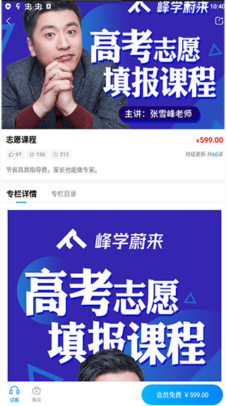 2、点击志愿课程选项,不过是需要购买才能观看,让家长也能够做这方面的专家
