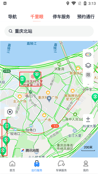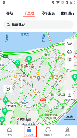 3、我们可以点击下面的出行服务,里面有导航、千里眼、停车等众多功能可以使用