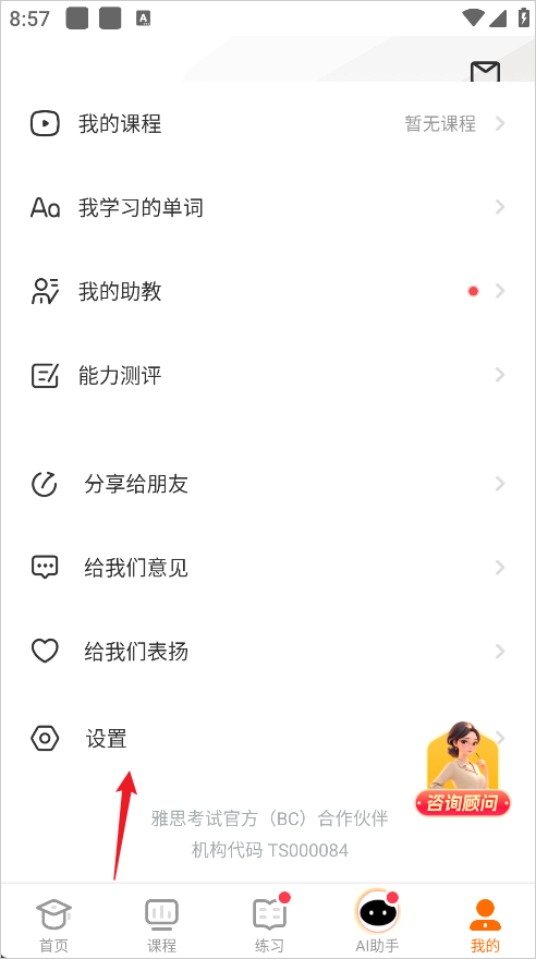 1、进入小站雅思App后点击右下角的我的