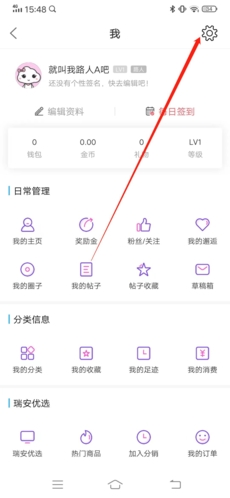 2、在个人信息页面,点击右上角的“齿轮”按钮;