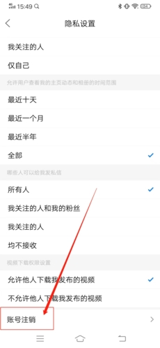 4、将页面拉到最下方,点击“账号注销”;