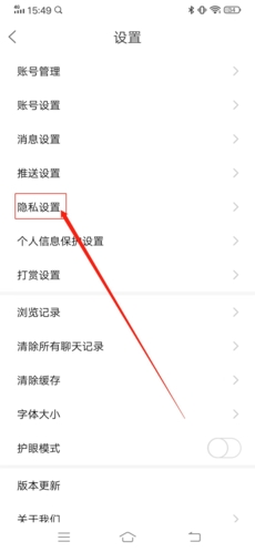 3、这样就进入到设置页面了,找到“隐私设置”并点击进入;